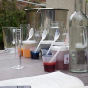 Yarns dyed using various mediums to create a tailor made woven item.